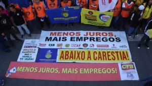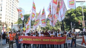 Durante o ato, o secretário-geral da CTB, Ronaldo Leite, alertou para os riscos de um novo aumento na taxa de juros, criticando a atuação do Banco Central: