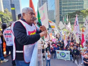 “Mais uma vez, os trabalhadores estão aqui na Avenida Paulista, participando do ato contra os juros. Aqui em São Paulo e em várias cidades do país, contra as abusivas taxas de juros que o Banco Central lamentavelmente vem praticando. E nas reuniões, ou melhor, na reunião que ocorre no dia de hoje e de amanhã, a expectativa é que o Banco Central aumente mais uma vez a taxa de juros e que nós podemos chegar a 14,75%. Isso inibe o crédito, inibe o crescimento, inibe os empregos e prejudica, sobretudo, a classe trabalhadora. É por isso que as classes sindicais, junto com os movimentos sociais, estão mobilizadas para mais uma vez estar aqui nas ruas, lutando para reduzir a taxa de juros. Essa é a nossa luta e vamos seguir juntos.”